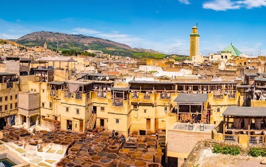 【費斯皮革染坊 Tanneries 】:費斯皮革染坊是摩洛哥仍在運作的傳統製革場之一,以自然染料與手工技術製作皮革。從周圍高處可俯瞰色彩繽紛的染池,強烈氣味也成為體驗的一部分。
