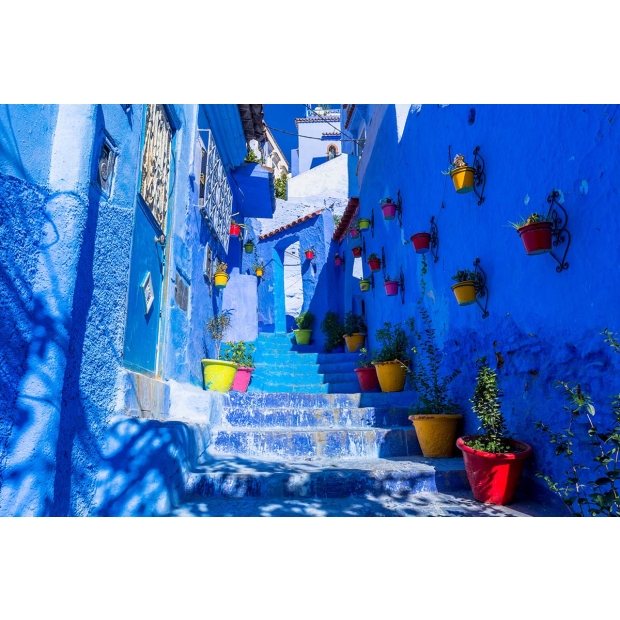 隱身在摩洛哥北部山區的舍夫沙萬(Chefchaouen),是一座夢幻到彷彿不屬於現實的城市。這裡以層層疊疊的藍色建築聞名,從深邃的鈷藍到淺淡的天藍,整座山城宛如海洋般蔓延,是攝影愛好者與靜心旅人朝聖之地。藍色牆面不僅美觀,據說還有驅蚊與象徵神聖之意。走在這座城市的階梯巷弄中,偶有貓咪慵懶曬日,或是當地老者端坐門前編織,時間仿佛停駐。舍夫沙萬既安靜又神秘,是都市節奏中一處難得的心靈庇護所。別錯過品嚐當地清爽的薄荷茶與羊奶乳酪,或在小廣場中坐下,靜靜感受藍色世界帶來的療癒力量。
