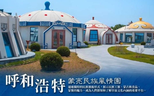 【蒙亮民族風情園】參觀內蒙古地區最大的民族民貿產品生產港口,瞭解手繪披肩、皮畫等工藝,感受蒙古 族的異域風情。 蒙亮民族風情園,下設研發中心、民族產品展示銷售中心、民族特色餐飲等多個專案,通 過獨特的民族藝術形式,展示民族工藝、蒙古族食品、蒙餐的魅力,成為人們探知和瞭解草原文化內涵的重 要平臺。蒙亮民族風情園是內蒙古地區規模較大的、獨具民族特色的蒙元文化旅遊接待中心,滿足遊客購 物,餐飲等一站式需求。