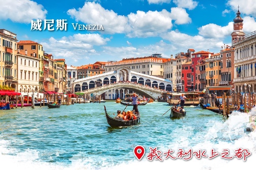 【威尼斯】 這座城市由大小運河與橋樑組成,上橋與下橋成為這座城市最美的期待,總會期待下一秒的景緻,是水道的盡頭,是輪美奐的窗台,又或是浪漫的貢多拉划經而過,是世界上最浪漫的城市。