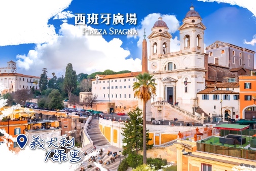 【西班牙台階廣場】羅馬購物的天堂,是電影羅馬假期中著名的場景,更因為這裡是西班牙大使館而得名,廣場周圍名店街,咖啡館林 立。享受休閒的浪漫,是一種幸福……恣意漫步於台階前的購物大街;無論是拍下美美的照片感受這個由現代與過去歷史交織成的軌 跡,遨遊屬於您的羅馬假期,永遠不會忘記今日與羅馬的相遇!