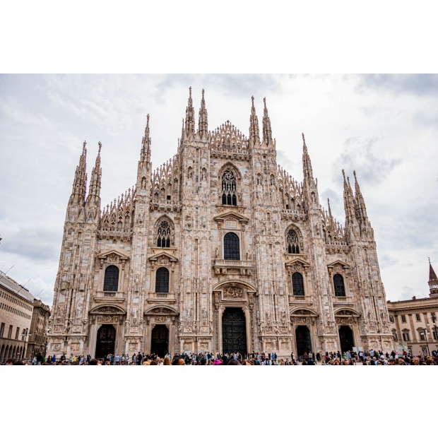 【米蘭大教堂】是米蘭的市標,為世界第三大教堂,擁有135座尖塔、2245尊雕像,是典型的哥德式建築,也是世界第二大的哥德式教堂,頂樓的最高尖塔居於堂頂正中,高達108.5公尺,上面是一座高4.16公尺的鍍金聖母雕像,教堂頂有135個尖塔,每一塔頂立一塑像,另有150個水道,410個大理石支架,上面均裝飾有浮雕,相當具有可看性。詩人徐志摩曾以《大理石的詩篇》來形容其教堂之美。