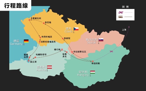 上海✈匈牙利布達佩斯→英雄廣場→馬提亞斯教堂→漁人堡→途經(護城碉堡→鎖鏈鐵橋→國會大廈)→多瑙河遊船 200km,約 3H~斯洛伐克布拉提斯拉瓦
