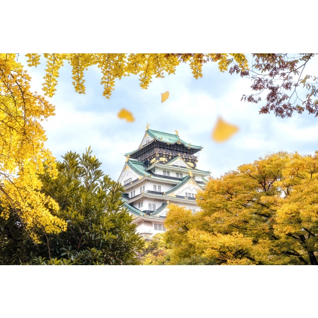 大阪城與名古屋城、熊本城齊名的三大名城之一,此城為日本名將『豐臣秀吉』所建造,其雄偉的石牆砌造佔地約百萬坪,分為本丸、二之丸和城廊之外的三之丸,四周以護城河圍繞,大阪城四周均為綠意盎然的公園綠地,秀麗的庭園和亭台樓閣、奇花異卉、滿目青翠、充滿詩情畫意。