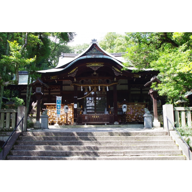 「岡崎神社」位於京都市左京區,鄰近平安神宮、南禪寺及永觀堂,許多京都人會特別來到這裡祈願,以姻緣、求子、安產等祈願非常靈驗而知名得神社。