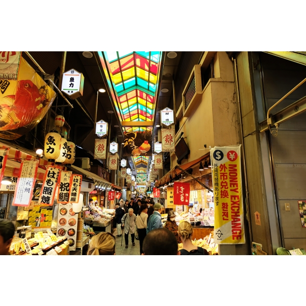 錦市場是位於京都市中心的歷史悠久的商店街,是京都最具代表性的商店街,街內有140餘家各種店鋪,銷售各種生鮮食品和日常生活用品以及各式小吃。因此又被稱為是京都的台所。錦巿場商店街搭有防雨頂棚,購物不受天氣影響。不少店鋪古香古色,在此散步,尋購小禮品,品嘗京式小吃,感受京都市井生活氣氛,同時也是食文化的難得體驗。