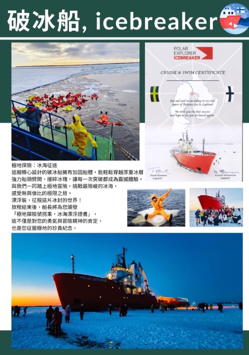 | Day 5 | 酒店-呂勒奧Luleå - 約100km破冰船Icebreaker Ship瑞典-約76km凱米 Kalix瑞典雪屋體驗365-約113km芬蘭普蘭區芬蘭~追尋極光第2晚 |