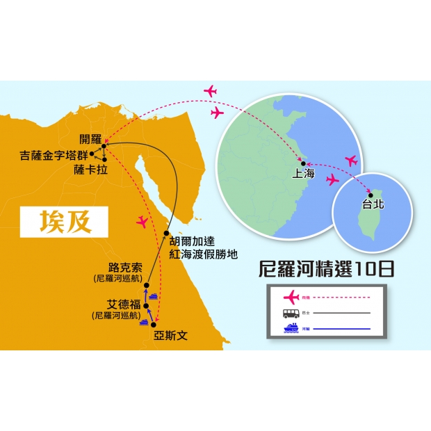 【埃及行旅】金字塔尼羅河~見證埃及神奇之旅五星10日【中段飛機+無購物】