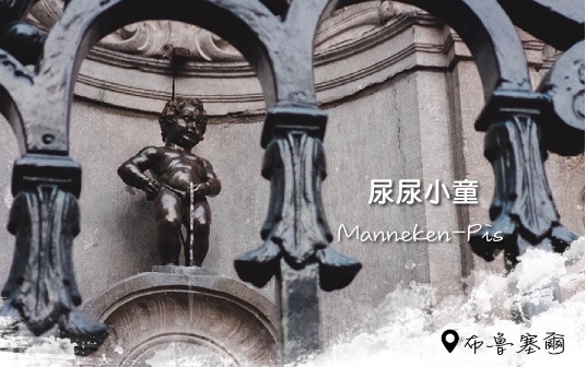 ●【尿尿小童】】尿尿小童,是比利時首都布魯塞爾的市標。這座聞名於世的小男孩銅像是一座落於市中心 步行區的雕像及噴水池。這個五歲小孩身材的雕像不大,卻有著四百年的歷史。尿尿小童是布魯塞爾最 著名的地標與精神象徵。這座青銅雕像位於市中心的一條小巷口,相傳在一次戰疫中,敵軍試圖用炸藥 炸毀布魯塞爾城,小男孩Julien發現了點燃的炸彈引線,跳下床,用尿尿澆熄了引信,拯救城市。