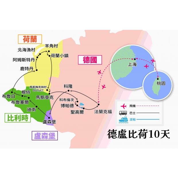 荷蘭小鎮 213km~馬斯梅克林村OUTLET 20km~馬斯垂克→天堂書局→地獄 門 187km~德國科布倫次