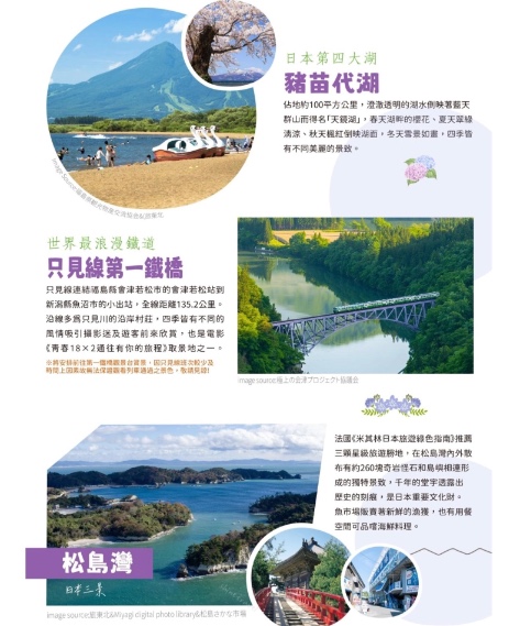 【會津鐵道】會津鐵道緩慢行走於會津若松與會津田島之間,在名勝景點處還提供暫時停車以供欣賞 的服務。美景接二連三,還有各種驚喜出現,保證絕無冷場。沿途更有大內宿及塔崖等人氣觀光景點, 體驗在地濃濃鄉間風情。