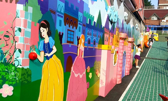 【松月洞彩繪童話村】位於仁川中國城旁,在看到可愛的彩虹愛心拱門時,代表仁川童話村就抵達了,隨即開啟大家的童話世界之旅,整個街道充滿了童話的純真氣息,這裡的房子不像是其他的壁畫村,只是在房子上塗鴉,而是做立體的設計。