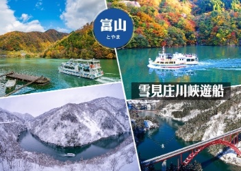 【庄川峽遊船】 搭乘最人氣之賞雪溪谷景觀的庄川峽,庄川發源於飛山中,自白川鄉五箇山流貫整個礪波平野,您可搭乘遊覽船,隨著船的行進感受緩緩流動的清流波動,欣賞兩邊絕壁景致,體驗幽然深遂的溪谷風情。
