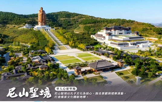 【尼山聖境】孔子誕生地曲阜尼山,毗鄰尼山孔廟,以“孔子的世界,世界的孔子”為總體創意,以“文 化修賢度假勝地”和“世界級人文旅遊目的地”為總體定位,集文化交流、文化體驗、修學啟智、生態旅 遊、休閒度假、教育培訓於一體,被譽為“讓世界認識山東、瞭解中國的又一前沿視窗”。