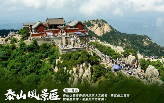 【泰山風景名勝區】泰山主峰玉皇頂海拔1.547 米,氣勢雄偉1987年泰山被列入世界自然文化遺產名 錄,更是唯一受過皇帝封禪的名山,其氣勢之磅礴無愧名為五嶽之首,泰山多松柏,莊嚴巍峨,泰山多 溪泉,清澈靈秀,山林問雲霧縹緲變幻,更使泰山增添了幾分 神秘與奧妙,秀麗的山麓、靜謐的幽靜、 開闊的山戀景色,從旭日東昇到黃昏夕照有 說不盡的自然奇觀, 自古吸引許多名人雅士到訪並留下詩 句,例如:孔子留下了"登泰 山而小天下"的讃歎,而杜甫留下了"魯當淩絕頂,一覽眾山小 ”的千古絕句。 泰山也 是著名的道教女神碧霞元君(俗稱泰山奶奶、萬山奶奶)的道場,王母娘娘神話傳說的 發祥地,泰 山無論是帝王將相、名人宗師乃至平民百姓都對泰山仰慕備至。