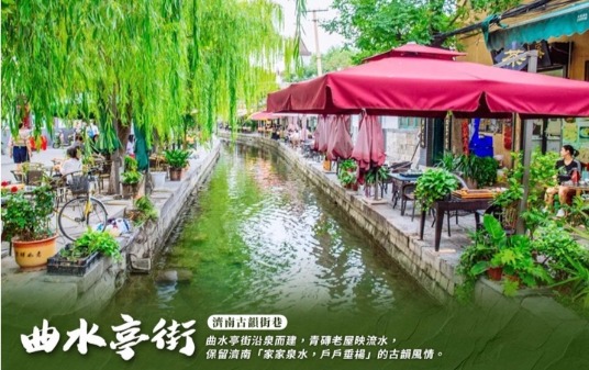 【曲水亭街】是泉城濟南一條聞名中外的歷史文化特色老街。現在的曲水亭街依然完整地保留著《老殘遊 記》中“家家泉水,戶戶垂楊”的泉城風貌。曲水亭街,叫起來上口,聽起來順耳,極富文化韻味。