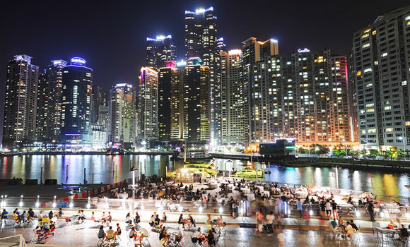【The Bay 101欣賞釜山絕美夜景】為位於海雲臺的複合文化藝術空間,是吸引許多遊客前來造訪的夜景勝地。旁邊就是美麗的釜山海景,搭配大樓建築的燈光,堪稱釜山絕美的夜景之一。一邊品嚐咖啡或啤酒,一邊欣賞夜景,享受一下渡假的優閒。而這裡也是許多韓星喜歡來到的地方,譬如也是釜山人的樂團CN BLUE主唱鄭容和,也是非常喜歡到這裡享受美麗的夜景。