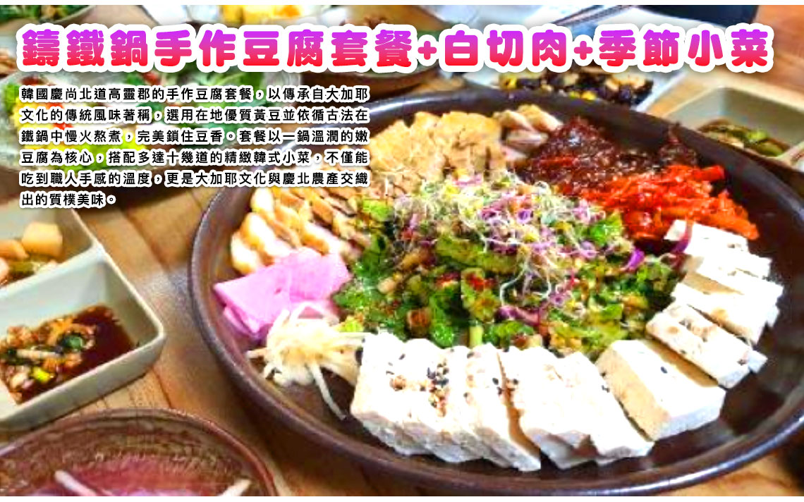午餐:鑄鐵鍋手作豆腐套餐+白切肉+季節小菜