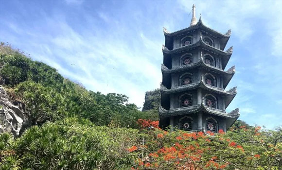 【五行山】原為海中島,多少年的變遷成了陸地上的山。一開始名為五蘊山、五指山,位於峴港以東七公里處,西面有寒江,東面臨南中國海,在海邊平坦的沙灘上,金、木、水,火、土五座山峰(其中火山為雙峰)拔地而起,氣勢雄偉。由於風光秀麗,古人有詩寫道:「何處景色勝五行,不遜仙境是蓬萊。山光彩石峰浴翠,古寺香霧繞雲岩。」五山之中以水山最美最大,水山位於東北方,海拔108米,山上有靈應寺、華嚴雲洞、華嚴石洞,靈岩洞、陵虛洞、雲通洞、藏珠洞、雲月洞及天龍洞等。