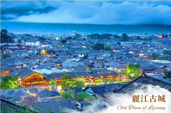【麗江古城】又名“大研古鎮”,世界文化遺產,國家5A級旅遊景區,坐落在玉龍雪山下,是一座 風景秀麗,歷史悠久和文化燦爛的名城,是一座沒有城牆的古城,光滑潔淨的窄窄的青石板路、完全 手工建造的土木結構的房屋、無處不在的小橋流水。明亮的陽光下,總會有步履緩慢的上了年紀的納 西老人悠閒地踱步,他們身著遙遠年代的靛藍色衣服,頭戴紅軍時期的八角帽,對眼前身後獵奇的目 光視而不見、不屑一顧,心中只是哼著一首名叫納西淨地的歌曲,呤唱著心中的淨地。