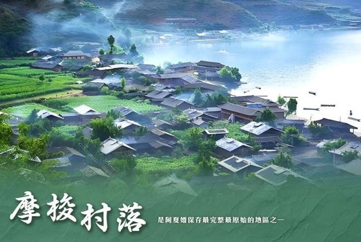 【裏務比島】摩梭人最早居住的一個島嶼,裏務比島四面環水,綠樹成蔭,鳥語花香,風景優美,島上 有寺-裏務比寺;裏務比島的最高處,古時麗江納西族土司首領木生白曾建有一座古老的瞭望塔,後來 被毀,僅存遺跡。