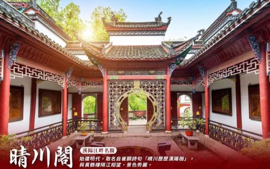 【晴川閣】又名晴川樓,全國重點文物保護單位、 國家AAA級旅遊景區,與黃鶴樓、古琴臺並稱武漢三 大名勝。晴川閣北臨漢水,東瀕長江,與武昌蛇山黃鶴樓隔江相望,是武漢地區唯一一處臨江而立的名 勝古跡,有“楚天第一名樓”之稱。晴川閣景區與武昌黃鶴樓夾江相望,江南江北,樓閣對峙,互為襯 托,蔚為壯觀,有“三楚勝鏡”之稱。名冠四方的樓閣隔岸相對,在萬裏長江上唯此一處。