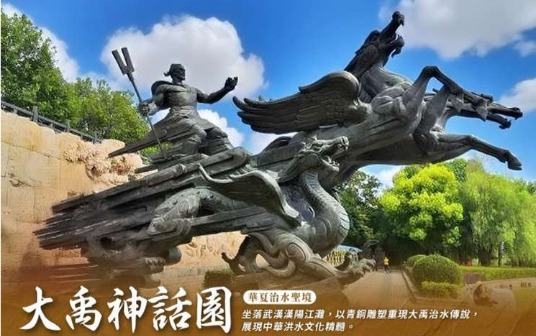 【大禹神話園】以大禹神話雕雕塑為主題的景觀園。大禹神話園長約400米,寬約60米,分上、中、下 三區和中國洪水文化展示館共四個部分。
