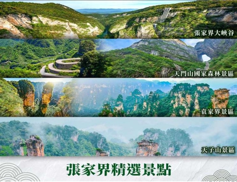 張家界【袁家界(百龍電梯上)、迷魂臺、天下第一橋、天子山(纜車下)、賀龍公園、 西海石林】】