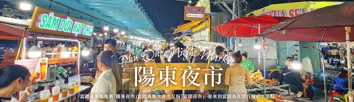 【Phu Quoc Night Market 陽東夜市】在富國島,滿載新鮮海產品的漁船隨處可見,島上最出名的夜 市,也是當地人吃海鮮大排檔的好去處。到富國島自然不能錯過海鮮,各種叫不上名字的大魚、大蝦、 貝類、海膽,琳瑯滿目的海鮮擺滿了每家攤位,現烤現吃,哪怕只是經過,滋滋作響的燒烤聲和濃濃的 香氣都會讓人口水直流。不吃海鮮怎麼辦?越南在吃的方面真的不用擔心,越南河粉湯頭濃郁但清爽, 越南黃金煎餅可搭配豬肉內餡新鮮蔬菜包覆沾魚露食用,法國麵包三明治的魅力也不容忽視,選擇肉類 主食加上新鮮蔬菜和沙拉搭配特別醬汁香料,令人食指大動。除主食之外熱帶當季水果攤也一應俱全, 清涼越式冰品甜點,還可以逛逛這裡的工藝品攤位以及手工小店,說不定會找到便宜又好看的紀念品。